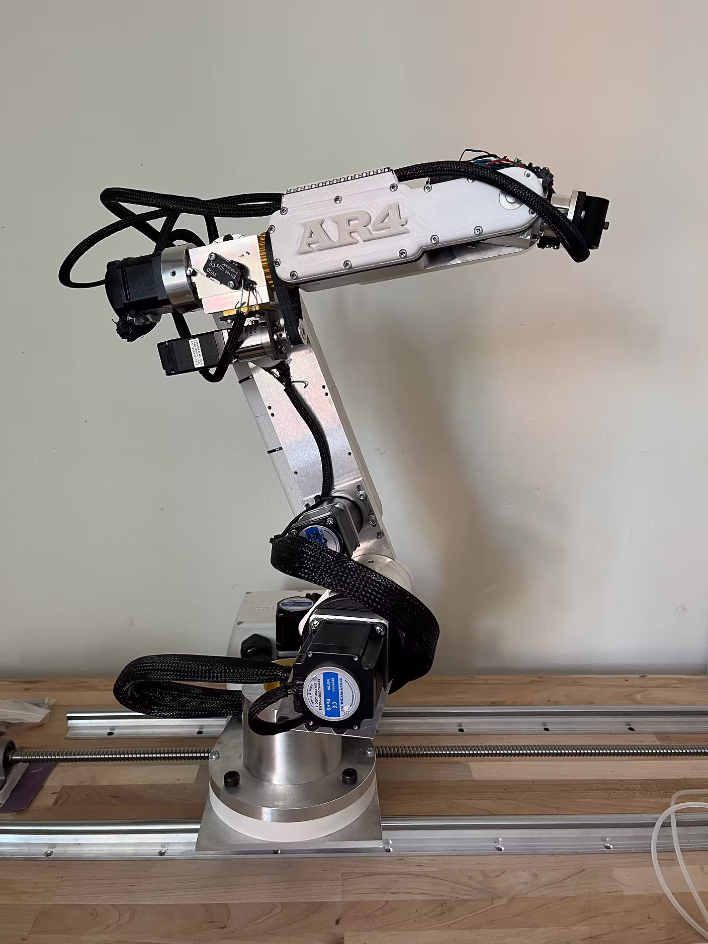 I'm selling a fully assembled AR-4 (Complete Electric Package + Robot Combo Kit), originally put together in Summer 2023. The arm has seen minimal use in an educational setting and is in excellent condition. I'm parting with it as I'm upgrading to a larger, commercially available robotic arm.