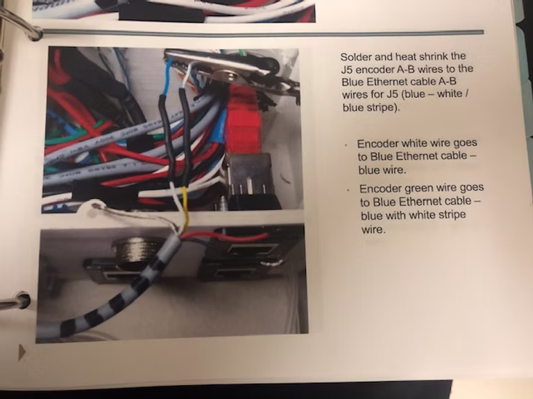 In the assembly manual its says/shows how to connect the cables from encoder in the robot arm box.