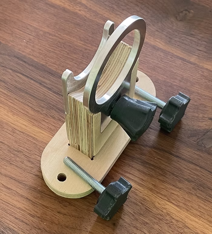 3. For easy and secure transportation i made a transportation lock which can be screwed onto the base plate and vice versa the joint 5 is locked onto this.