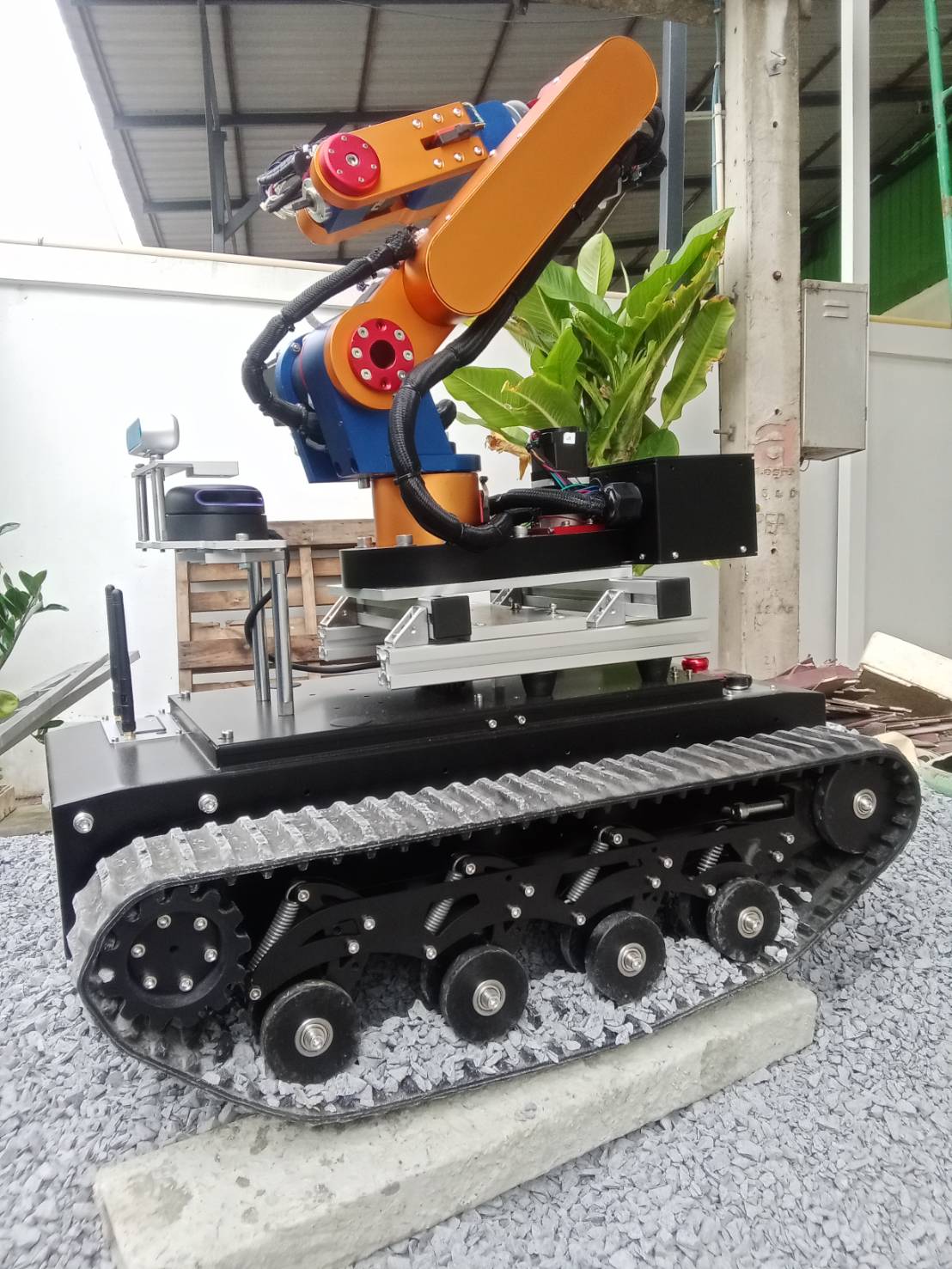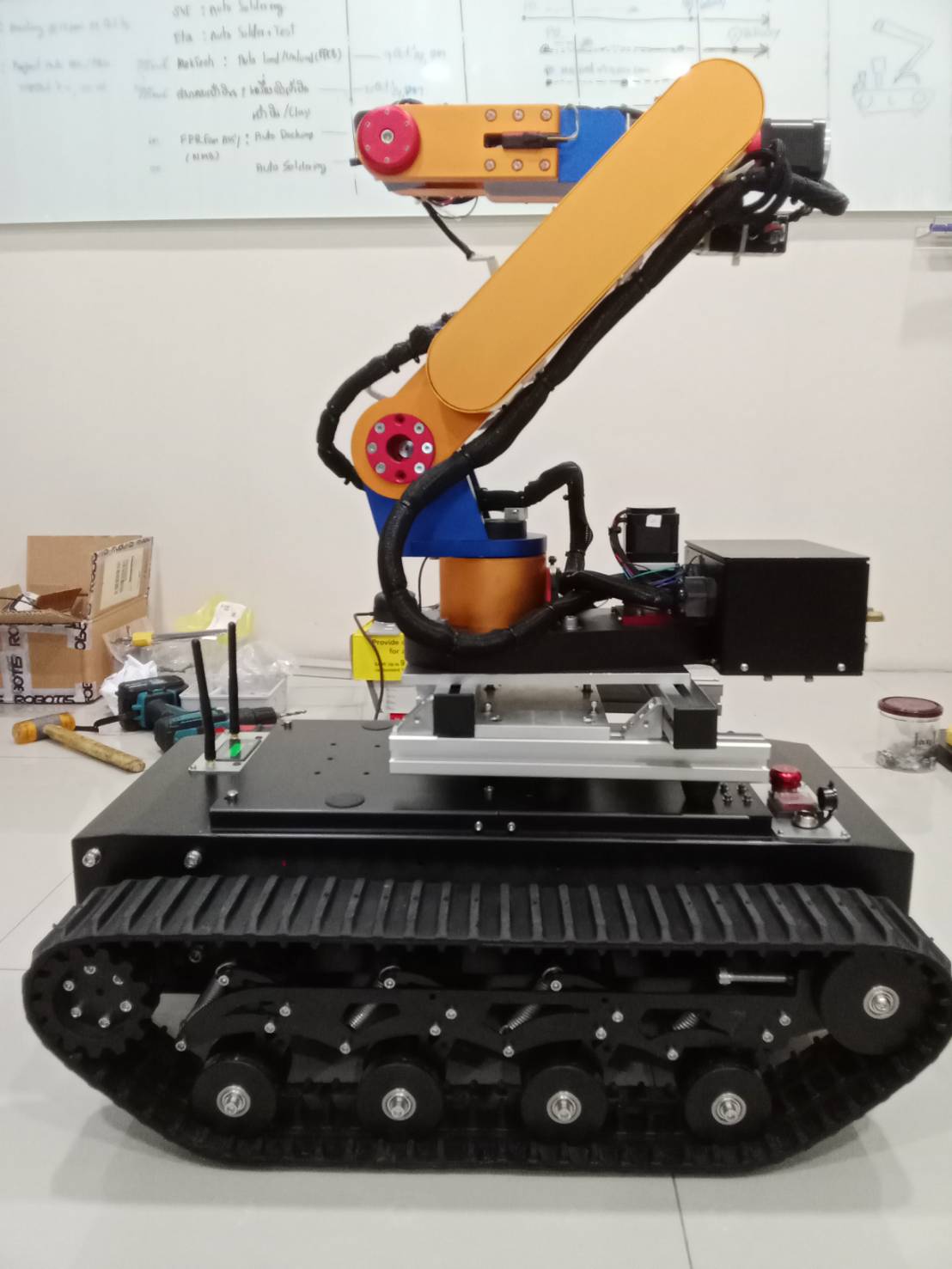 The project was born from a vision by Suebpong and the Majortech team to push the limits of mobile robotics. While stationary arms are common, the goal was to give a powerful robot arm true “legs”, or in this case, tracks, to go where the work is. Inspired by the need for versatile automation in Smart Agriculture and the high-stakes demands of Search and Rescue (SAR), they set out to mate the powerful 6-axis AR4 robot by Annin Robotics with the Terrex (TR-80) tank chassis.